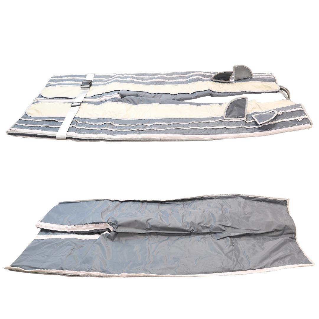 2.Cinta de cierre a la altura de pecho/abdomen para evitar que con el hinchado se abran las cremalleras.