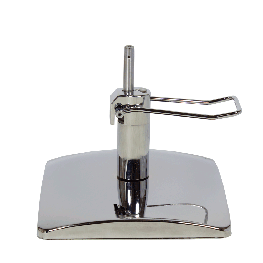 Base cuadrada para sillas de peluquería. Con 4 tapas de goma. Hecho de metall. Cromada.