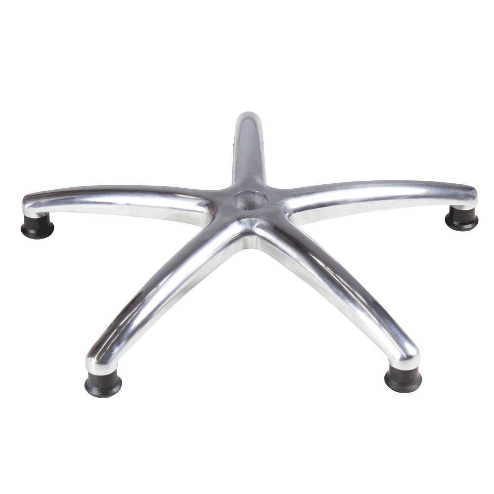 La base de las sillas para peluquerías en forma de estrella. Hecho de aluminio. Cromada. Con 5 patas.