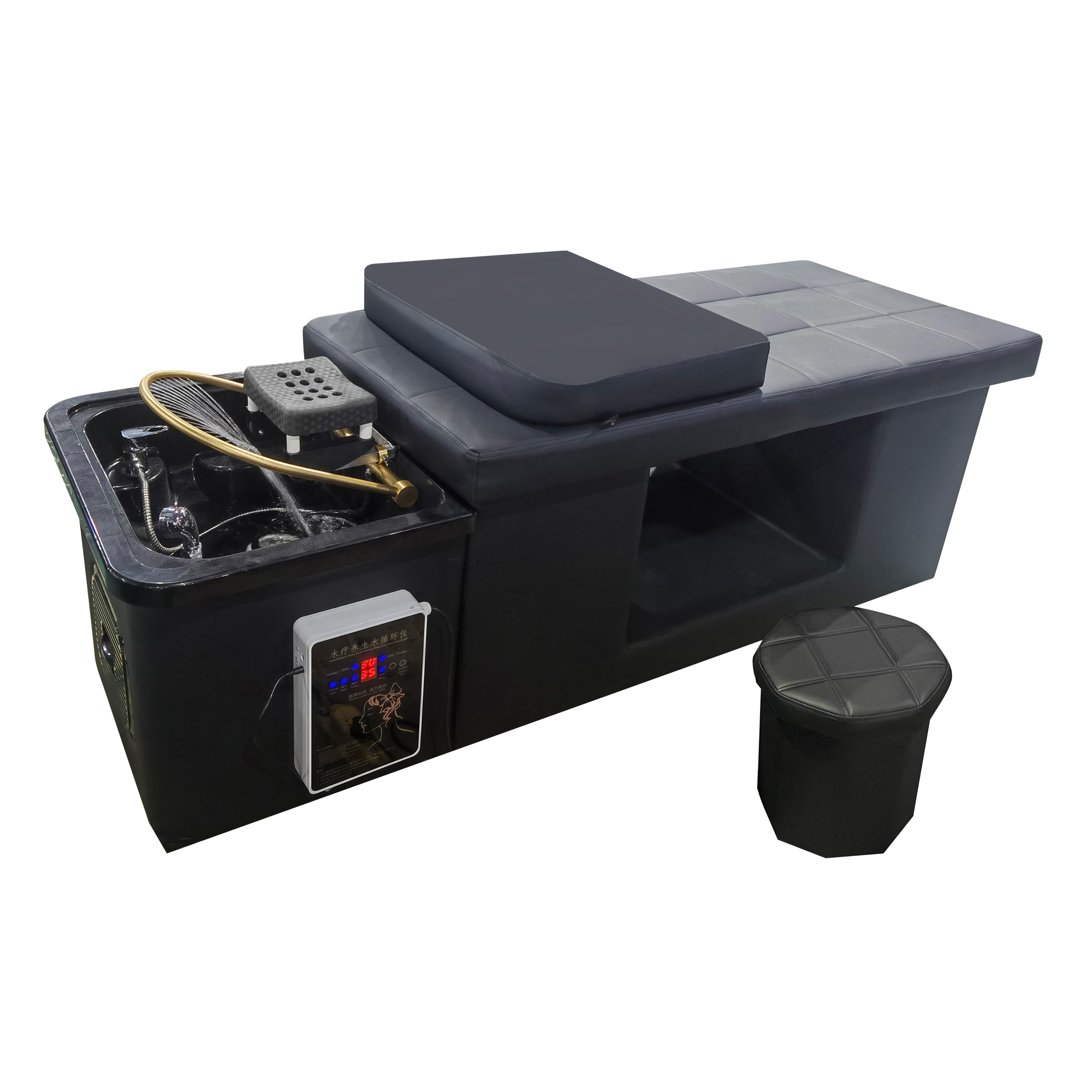 Conectar el lavacabezas a la toma de agua y desagüe según las instrucciones del fabricante. Ajustar la inclinación de la cuba y activar el modo de masaje para ofrecer una experiencia de lavado relajante y profesional.