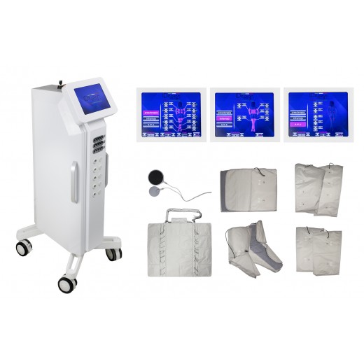 Presoterapia 3×1 con Pantalla Táctil. Equipamiento multifuncional para tratamientos de presoterapia, sauna y electroestimulación. Ideal para centros de estética y bienestar. Pregunta por nuestras ofertas.