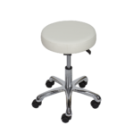 Taburete redondo de 5 ruedas. Asiento tapizado en PVC de alta calidad, regulable en altura mediante pistón de gas.