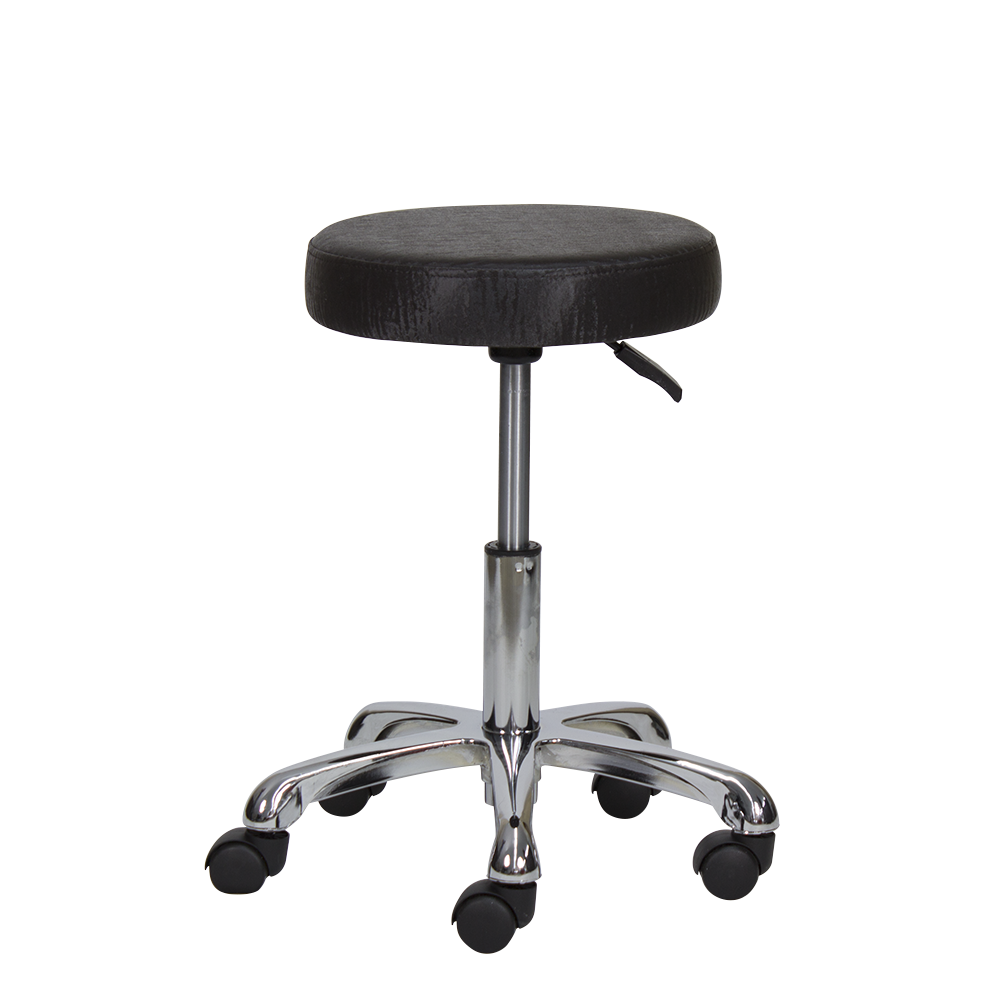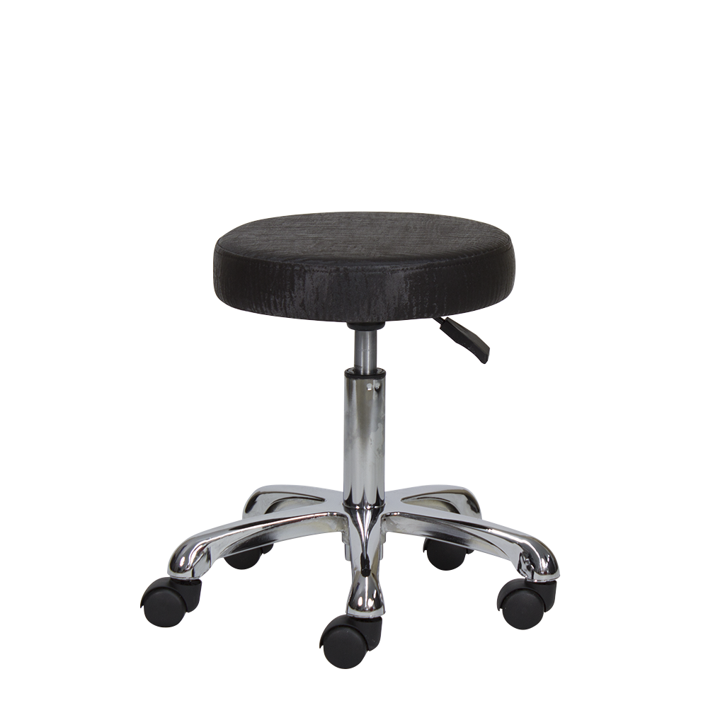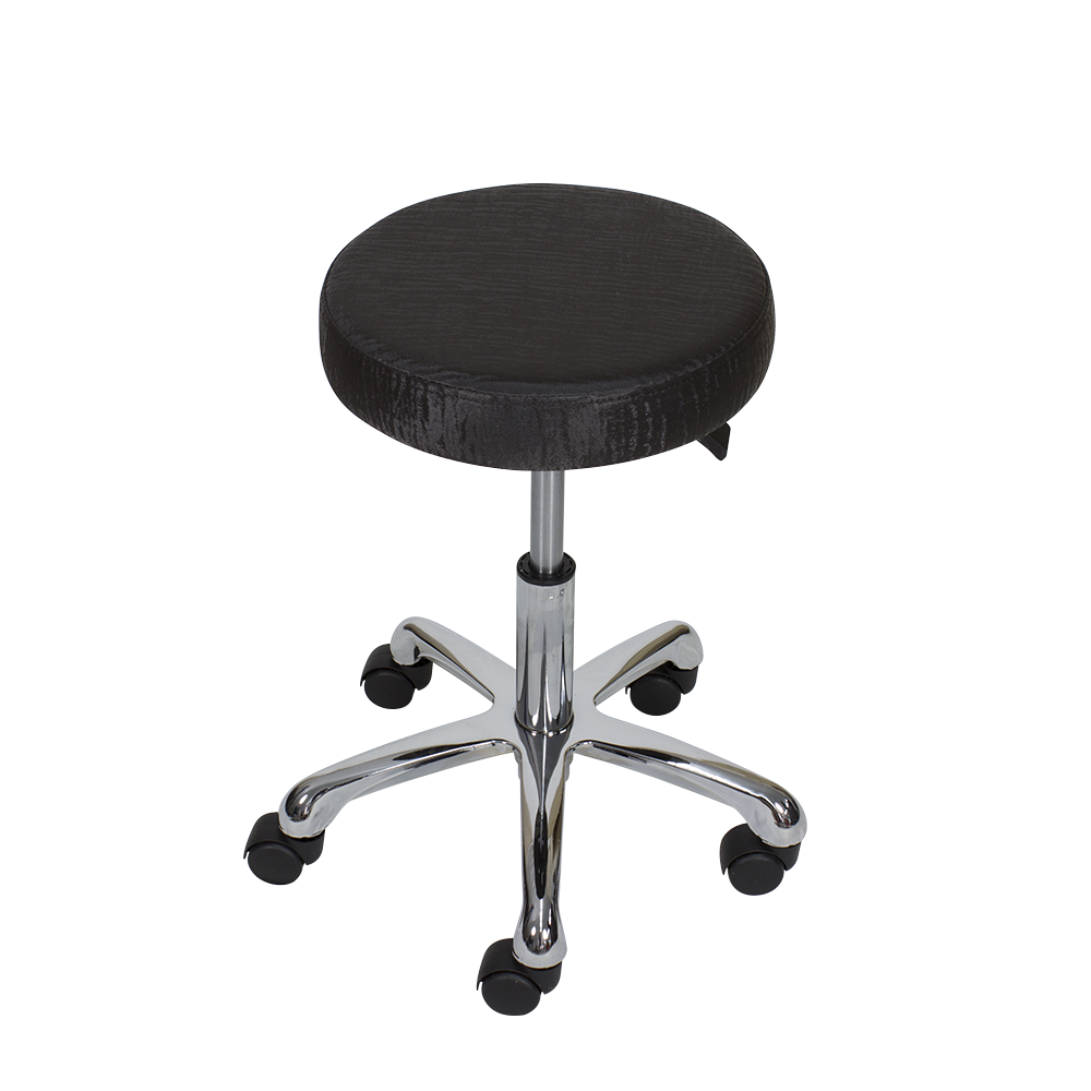 Taburete redondo de 5 ruedas. Asiento tapizado en PVC de alta calidad, regulable en altura mediante pistón de gas.