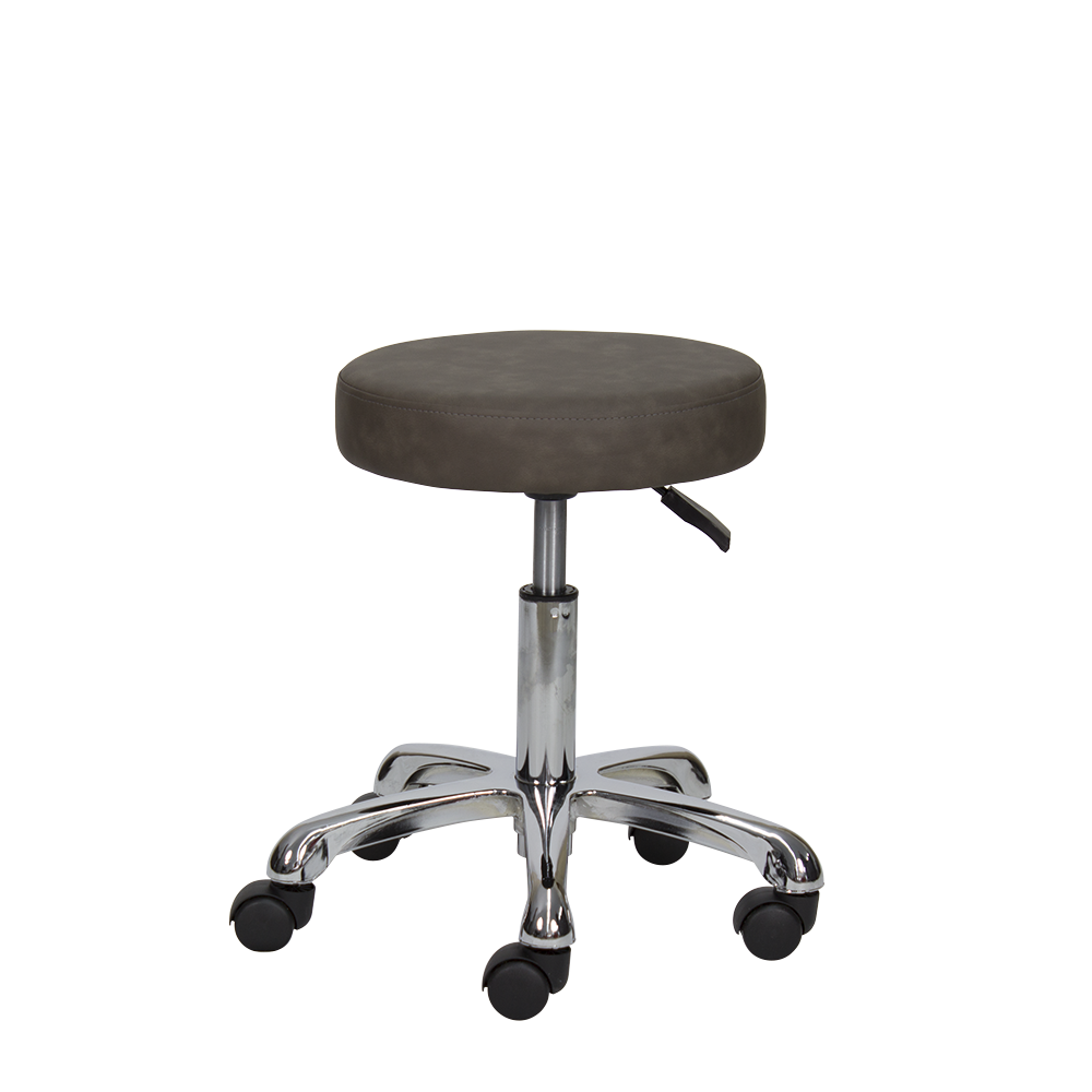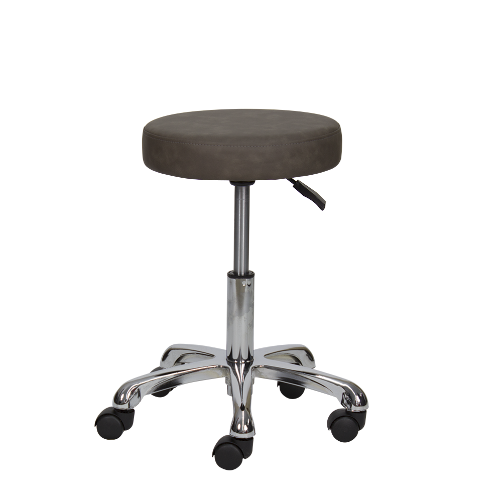 Taburete redondo de 5 ruedas. Asiento tapizado en PVC de alta calidad, regulable en altura mediante pistón de gas.
