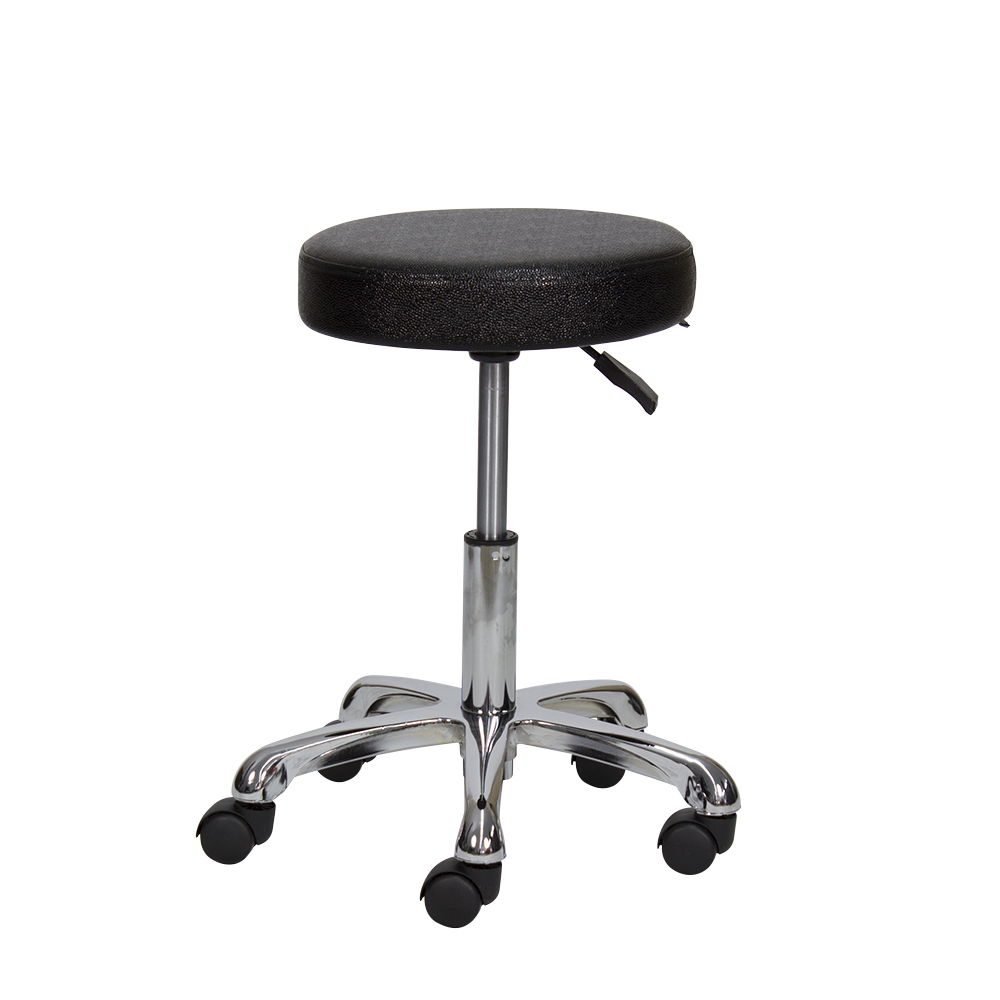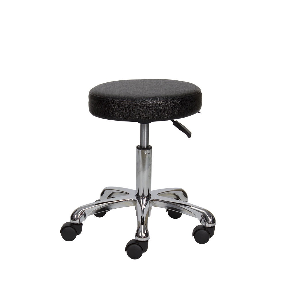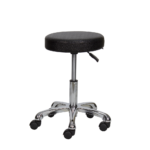 Taburete redondo de 5 ruedas. Asiento tapizado en PVC de alta calidad, regulable en altura mediante pistón de gas.